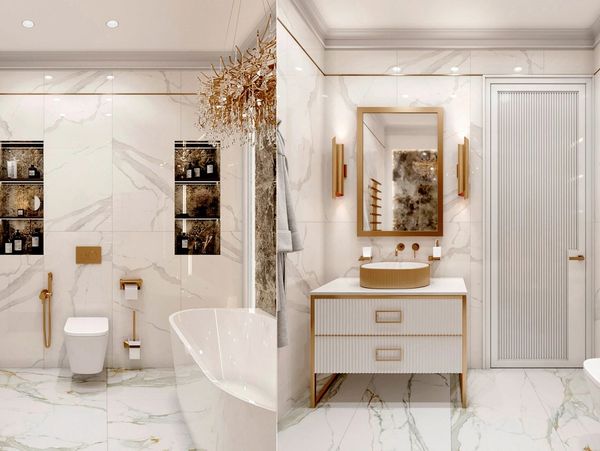 We tried to blend the classical style with the modern style for the Unsay project. which is in line with the wishes of the homeowner so that it would not be independent from the rest of the house. We especially reflected the luxury style that our hosts paid attention to and wanted. We wanted the combination of gold touches and the marble tone we chose to capture this luxury style.
