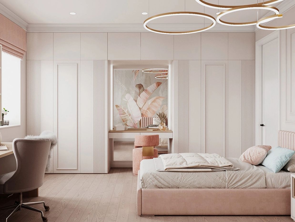 In the room we choce pastel tones for the dominating.We tried to capture the transition with cream tones while combining simplicity and minimal line with modernism. We tried to add a different touch to the project with the LED chandelier design that we used. Our aim was using space and volume as easy as possible.